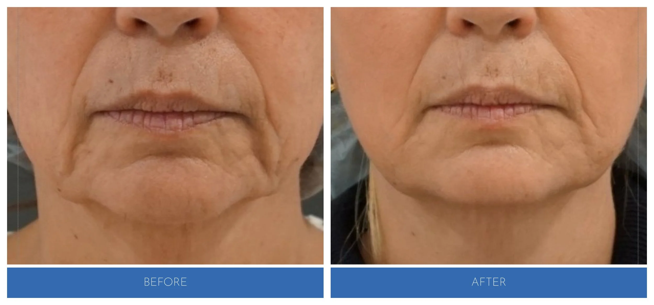 The fractional heating effect created by Sofwave™’s unique ultrasound delivery stimulates the production of new collagen and elastin which leads to the reduction in fine lines and wrinkles.